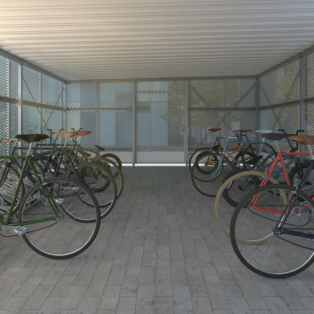 Das gilt bereits in der Planungsphase Ihrer Fahrradgarage, in der wir Sie zur Berücksichtigung Ihrer persönlichen Wünsche umfassend beraten. Hinzu kommen ein langlebiges feuerverzinktes Stahltragwerk sowie robuste Fassadenpaneele und Dreh- bzw. Schiebetüren mit Sicherheitsschlössern, die die sichere Unterbringung Ihrer Fahrräder und E-Bikes gewährleisten.