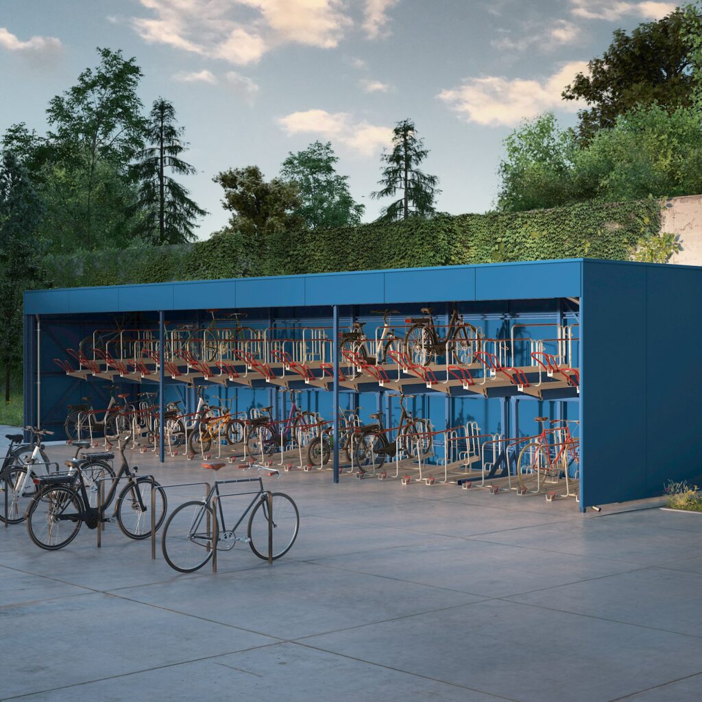 Klar strukturiert. Sicher. Platzsparend. Egal, ob in offener Bauweise oder als abschließbare Räume – hier sind Fahrräder gut verstaut und leicht zugänglich.