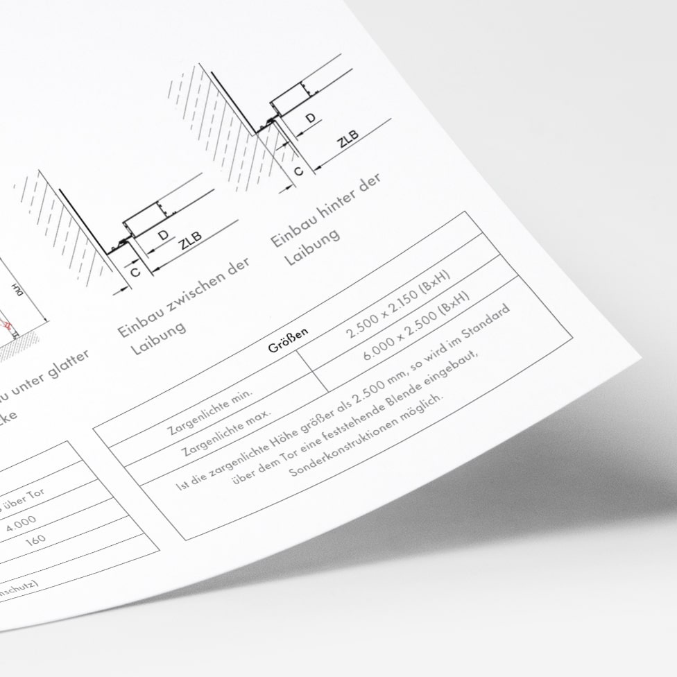 Your wishes and the respective installation situations and dimensions form the basis for us when planning and manufacturing garage doors. In this way, and thanks to the wide range of colours and materials for the door panels, our doors harmonise perfectly with your architecture. Added to this is our comprehensive service, with which we support you right from the start with all fire protection issues.