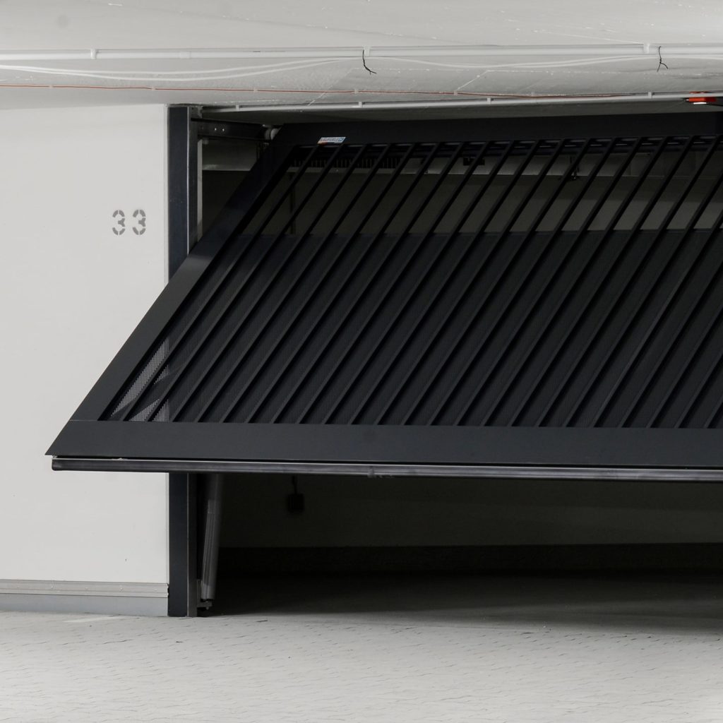 Our electric up-and-over garage doors for collective garages are tested in accordance with DIN EN 13241 and designed for many door cycles. Thanks to the garage door operator with soft start and soft stop and the intelligent lightweight aluminium construction, they are also low-wear, quiet and durable.