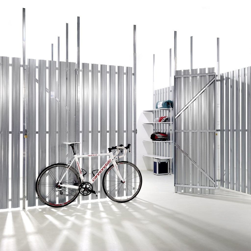 A robust, modular steel construction that can be flexibly adapted to a wide range of room geometries and heights. A modular system of high-quality, durable and aesthetic metal and wood panelling. Numerous intelligent equipment details and customised design options. This is the UTS® partition wall system from Käuferle for car park boxes, cellars and attics.