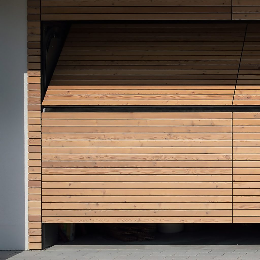 Wie bei Sektionaltoren und Seitensektionaltoren gibt es auch beim Kipptor HT unzählige projektspezifische Ausstattungsoptionen, die nicht auf der Preisliste stehen. Beispielsweise sind die Materialien und Oberflächen der Torbeläge frei wählbar: Beplankungen mit lasierten oder lackierten Holzpaneelen und -lattungen stehen ebenso zur Auswahl wie unterschiedlichste Metallbeläge.