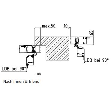 Platzbedarf unter Decke/Unterzug max. 135 mm
