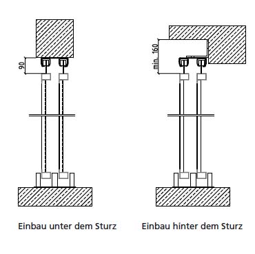 Platzbedarf unter Decke/Unterzug max. 170 mm