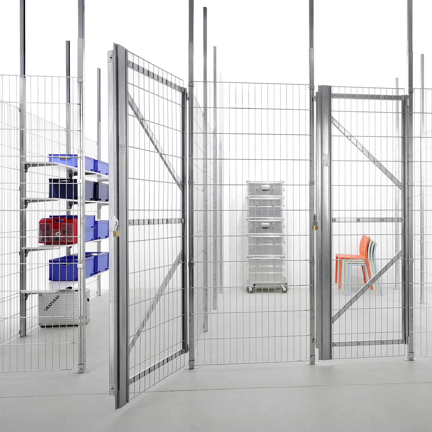 Dieses Trennwandsystem bietet eine preisgünstige Lösung, wenn es um räumliche Abtrennungen in Kellern, Dachböden und Parkboxen geht. Schweißgittermatten mit einer Maschenweite von 50 x 200 mm und einer Drahtstärke von 4 bzw. 6,5 mm (vertikal bzw. horizontal) schaffen eine leichte und offene Atmosphäre sowie eine optimale Licht- und Luftdurchlässigkeit.