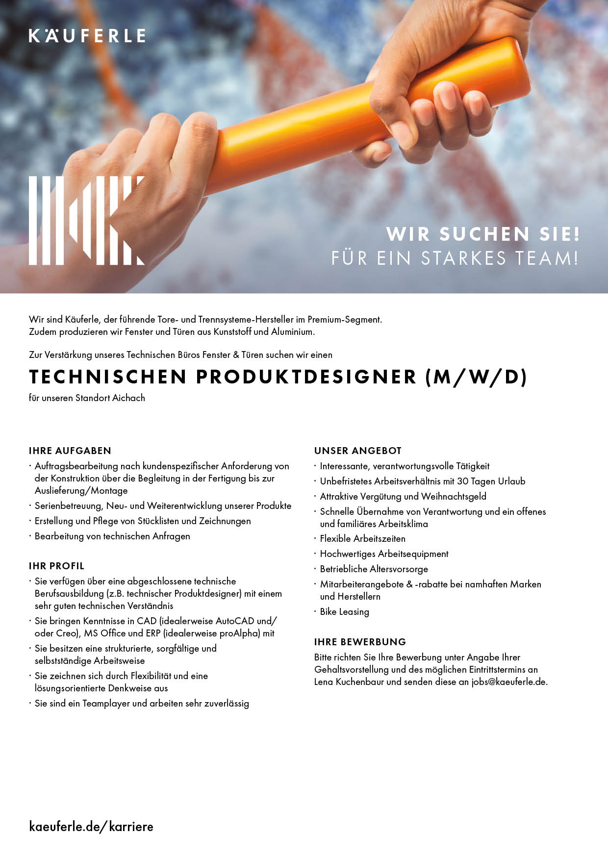 "Was mir hier bei Käuferle von Anfang an besonders gut gefallen hat, sind das kreative Arbeiten und die großen Gestaltungsmöglichkeiten. In einem interdisziplinären Team entwerfen und realisieren wir in enger Abstimmung mit Bauherren und Architekten die unterschiedlichsten Tore. Dabei entstehen maßgeschneiderte, gestalterisch individuelle Lösungen, die nicht nur langlebig, sondern meistens tatsächlich lange im Einsatz und damit nachhaltig sind. Das gibt mir ein gutes Gefühl."