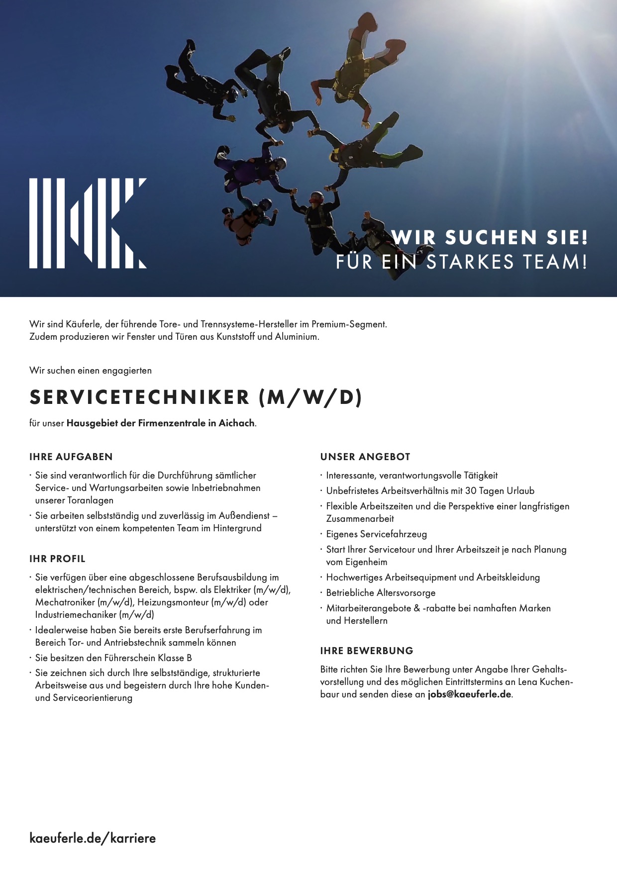 Wir sind Käuferle. Ein Familienunternehmen aus Aichach bei Augsburg und führender Hersteller von Toren und Trennsystemen. Wir schützen Werte. Mit handwerklich durchdachten Produkten. Mit einem Design, das zur Architektur passt. Mit ganzheitlichen, individuellen Lösungen und Services, die wir gern gemeinsam mit unseren Kunden erarbeiten und umsetzen.